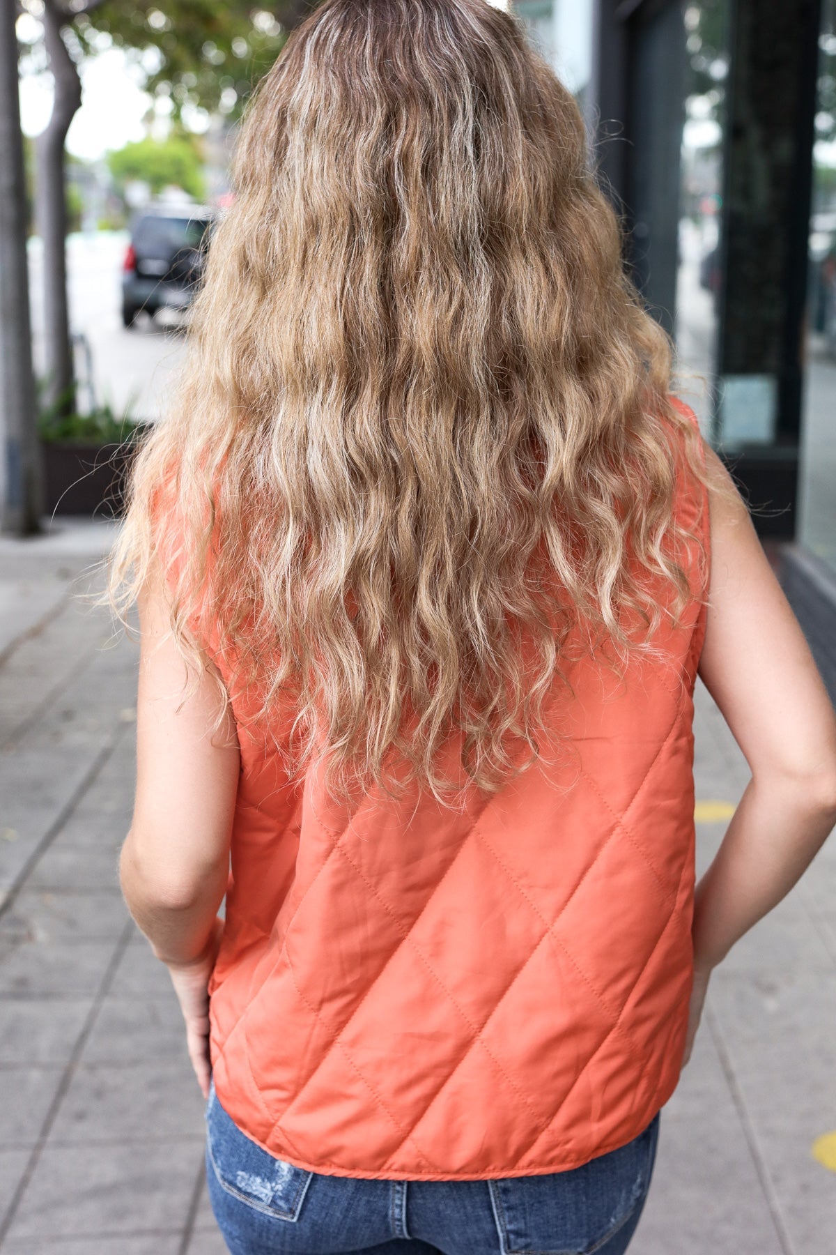 Weekend Ready Rust High Neck Snap Button Quilted Puffer Vest